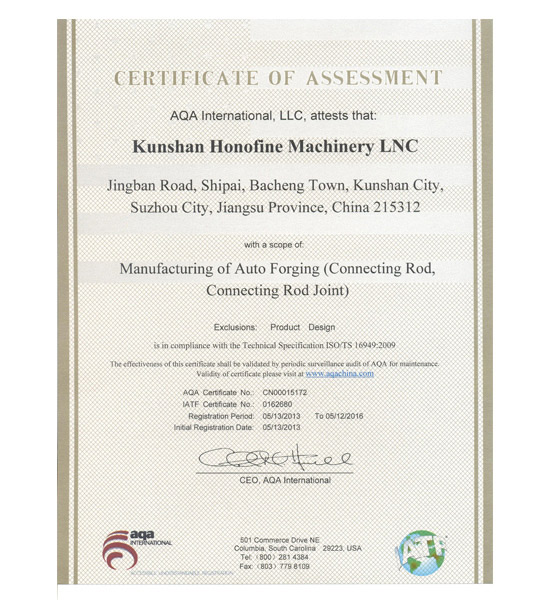 Passed the authentication on the forging by Hitachi company